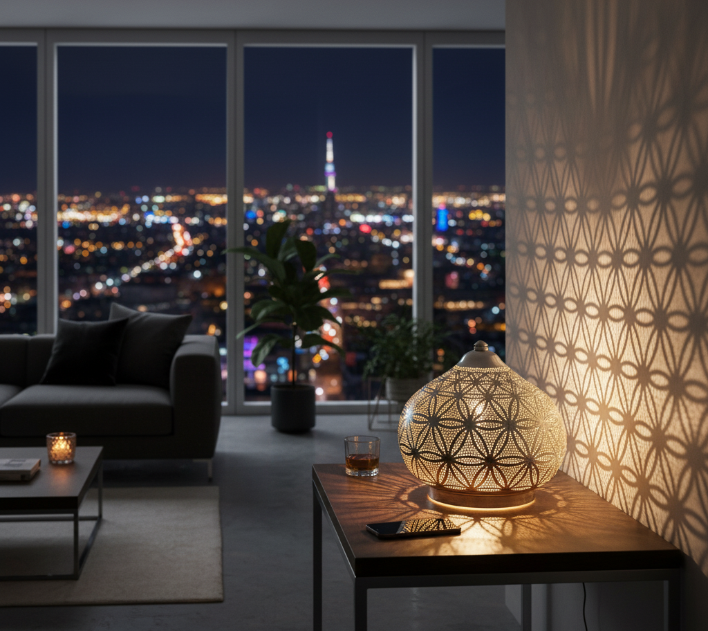 Ideal für Wohnzimmer, Schlafzimmer oder Meditationsräume – diese Leuchte schafft einen Ort des Rückzugs, der Inspiration und des Wohlbefindens.