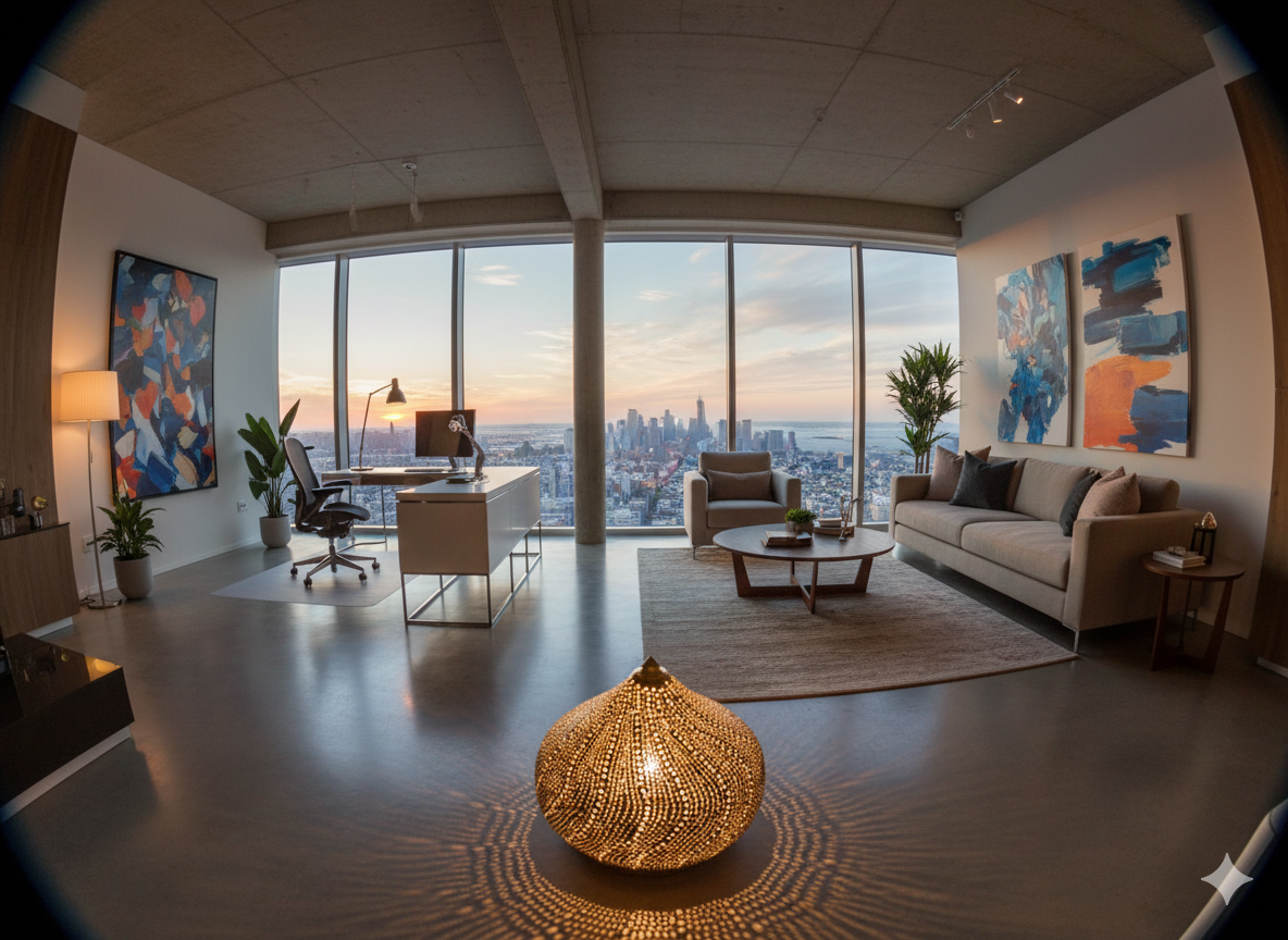 Zimmer Küche , Esszimmer , Wohnzimmer Form rund Stil modern , edel
