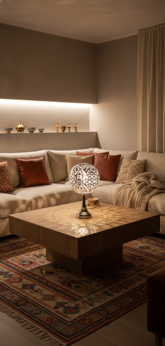 Perfektes Lichtspiel: Dank ihrer runden Form und dem hochwertigen Material bietet die Tischleuchte eine sanfte, gleichmäßige Lichtstreuung, die jeden Raum in ein warmes und einladendes Licht taucht.
