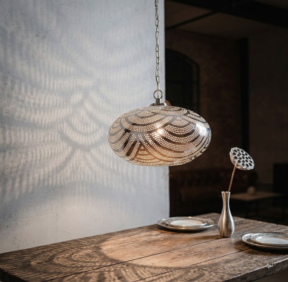Warum die UFO-Pendelleuchte 65-0 mit Muschelmuster, versilbert: