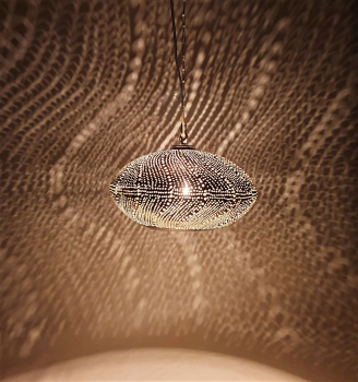 Warum die UFO-Pendelleuchte 65-0 mit Moga-Muster, Messing versilbert: