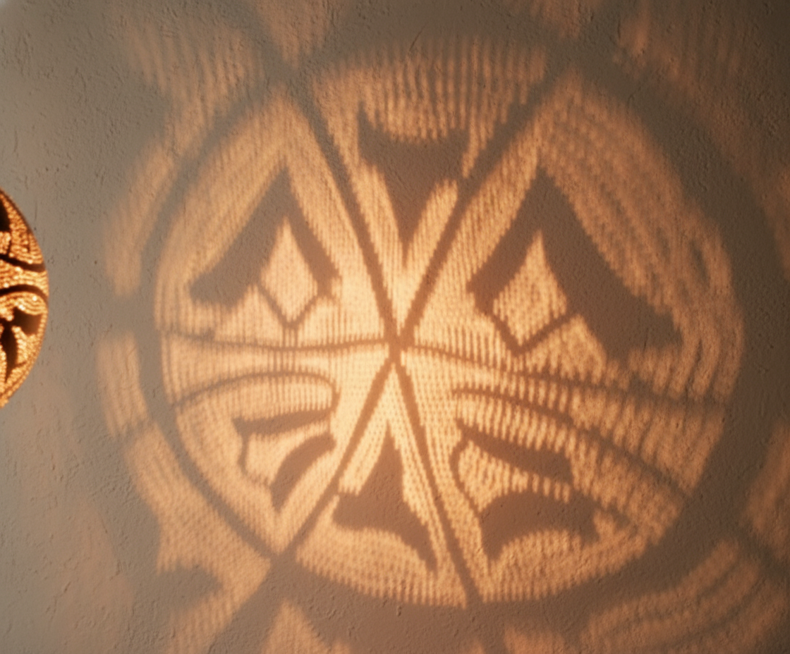 Seit Jahrhunderten im arabischen Raum gefertigt: Messing wird über Feuer erhitzt, in Form gebracht, sorgfältig verlötet und von Hand graviert. Tausende feine Bohrungen erzeugen die charakteristischen, filigranen Muster – für faszinierende Licht- und Schattenspiele.