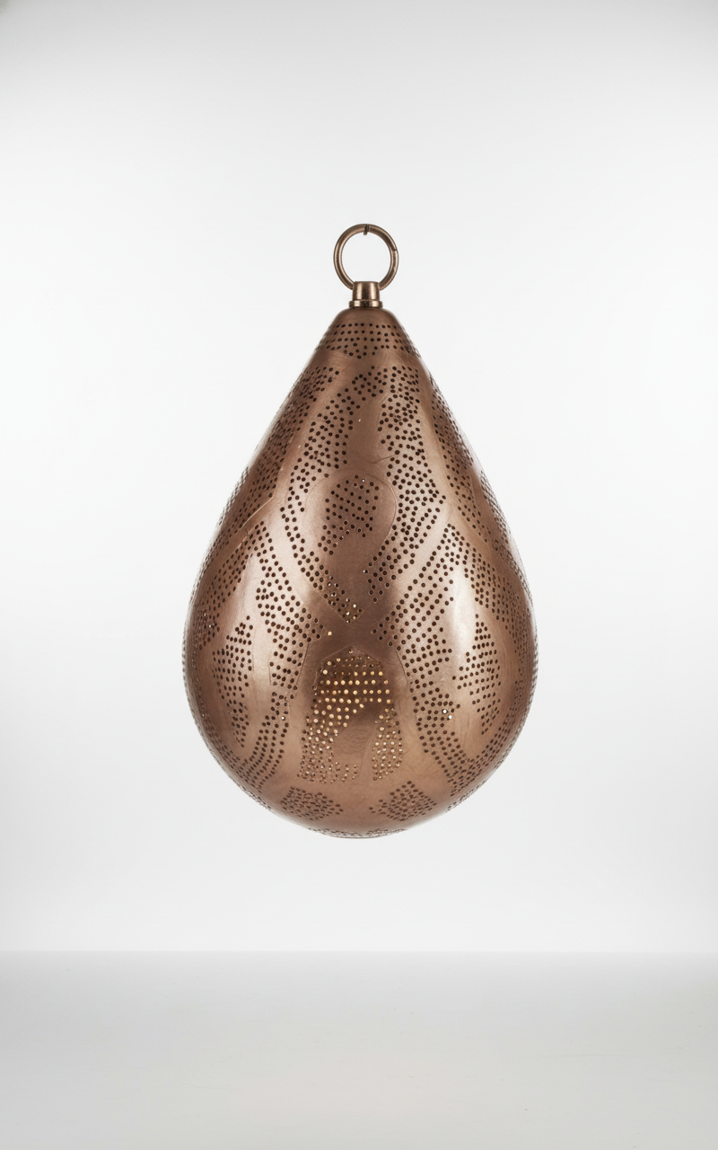 Die Leuchten werden gelötet und von Hand graviert, erst danach erhalten sie die Löcher durch eine von Hand betriebene