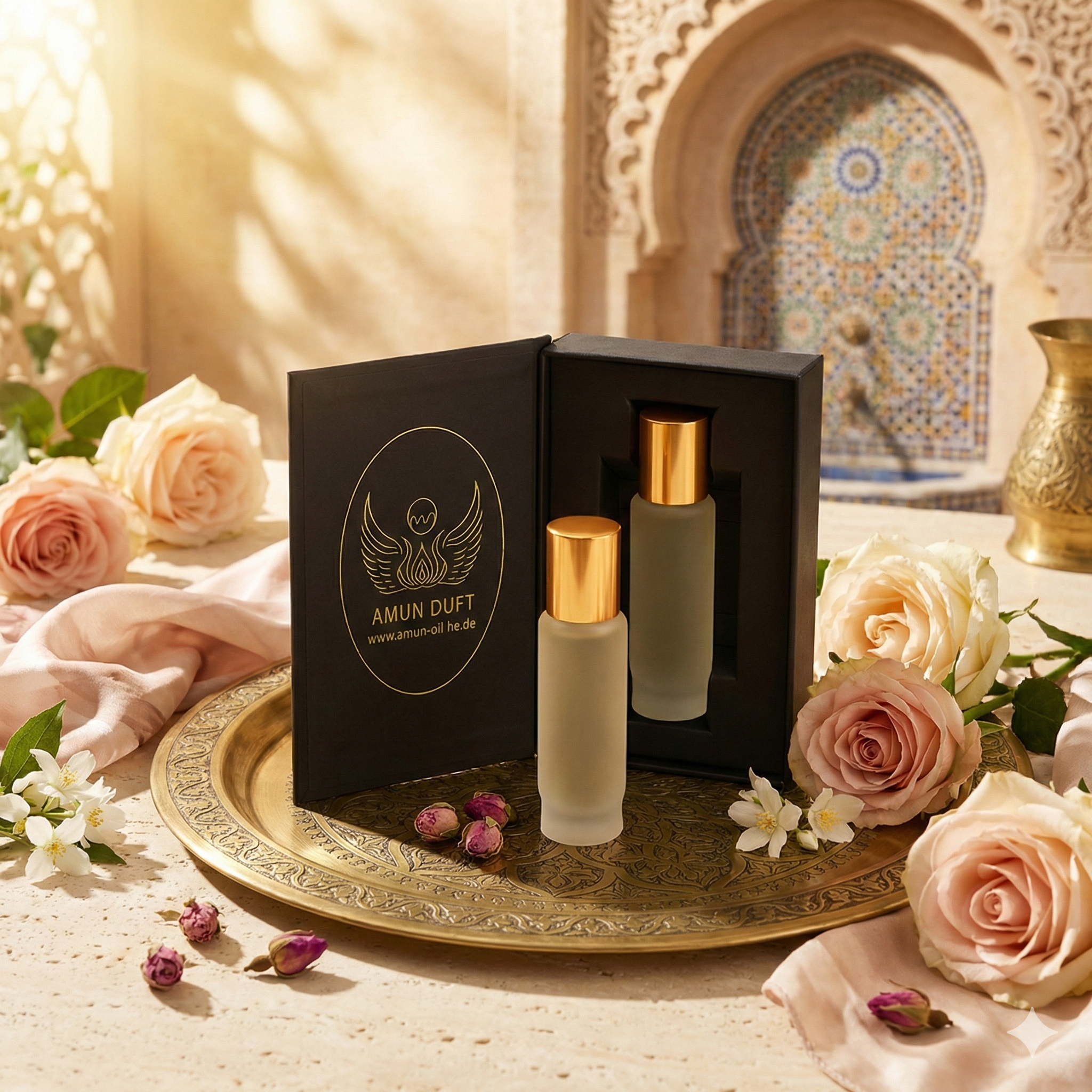 Dieser orientalisch-frische und zugleich sinnliche Duft ist verführerisch und elegant zugleich. Er eröffnet mit einer Basisnote aus Rose und Jasmin, die die Sinne auf eine Reise in die Welt der Sinnlichkeit entführt.